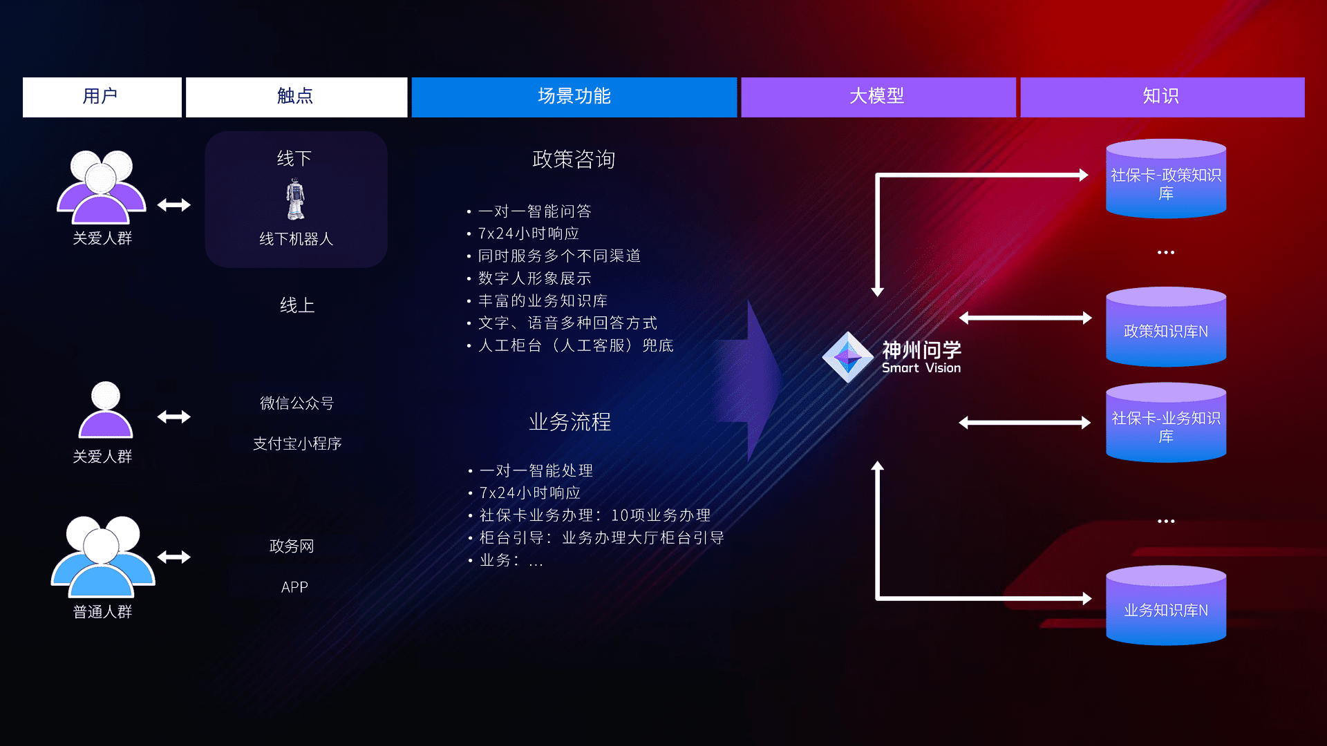 • 线上线下全覆盖:线上提供微信公众号、、支付宝小程序、、、政务网、、、app多种渠道,,,与线下机器人形成完整服务体系。。。。